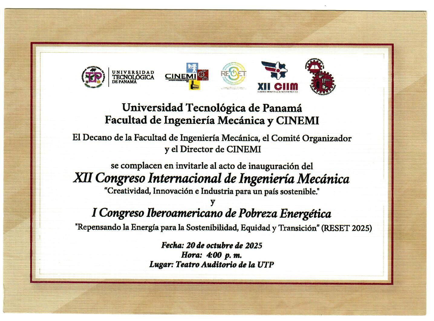 Lugar: Universidad Tecnológica de Panamá, Vía Puente Centenario, Campus Central Dr. Víctor Levi Sasso, Edificio de Investigación, Piso N°1.